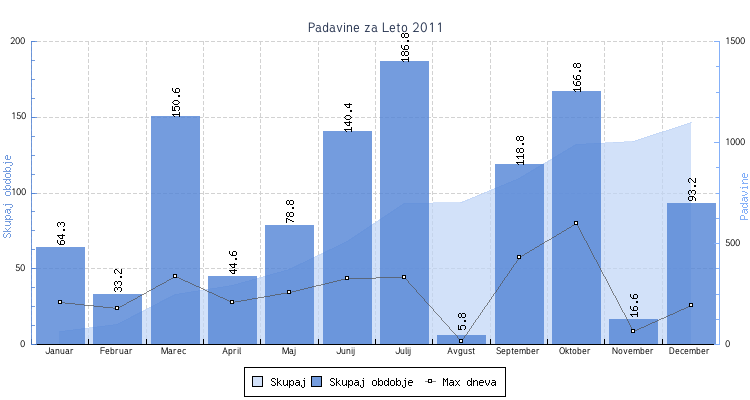 - Letne padavine : 1099.9 mm