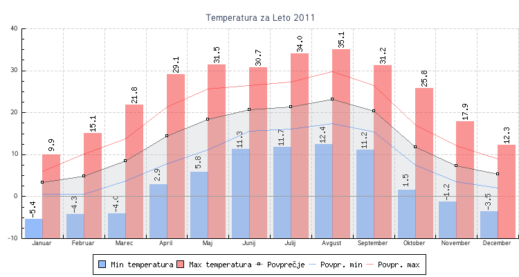 - Maksimalna temperatura : 35.1 °C dne 12 Avgust
