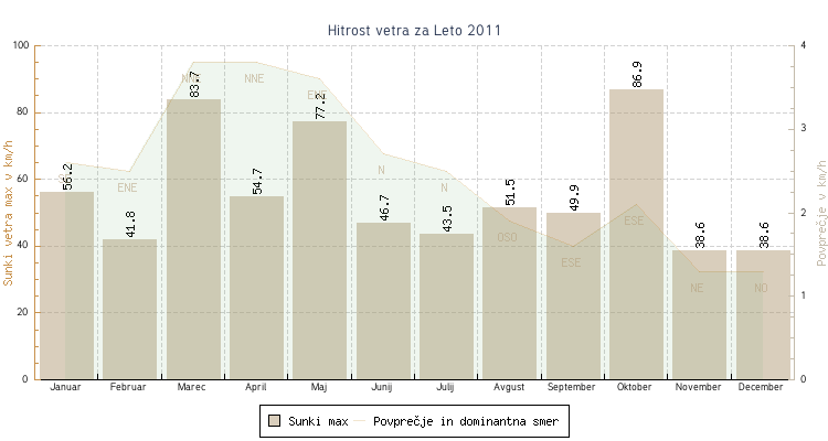 - Povprečna hitrost vetra : 2.5 km/h