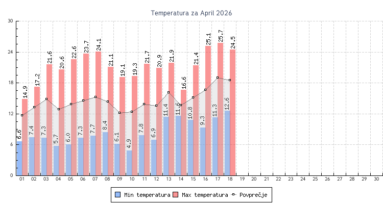 - Maksimalna temperatura : 25.7 °C dne 17 ob 15:40
