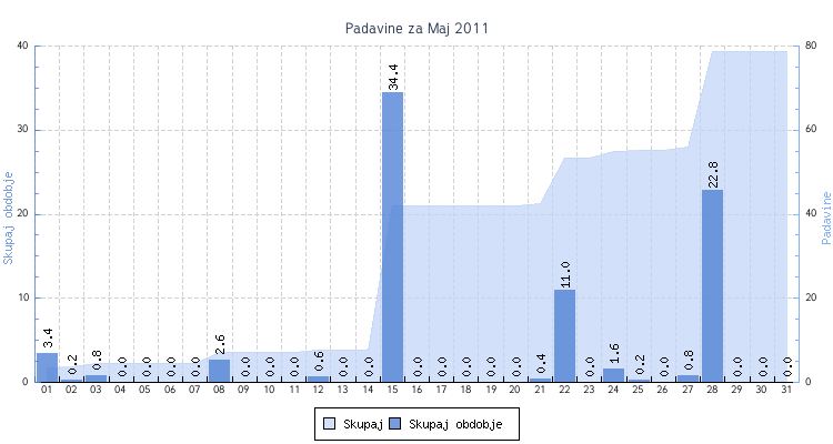 - Maksimalne dnevne padavine : 34.4 mm dne 15
