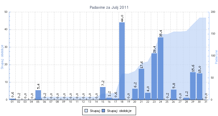- Maksimalne dnevne padavine : 44.0 mm dne 18